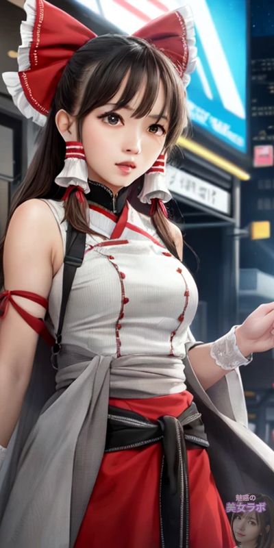 画像4: 未来的な都市を背景にした彼女は、サイバーパンクな雰囲気を持つキャラクターです。クールな表情が魅力的です。