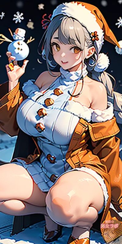 画像2: 雪の中で雪だるまを持つセクシーなサンタ風アニメ美女。