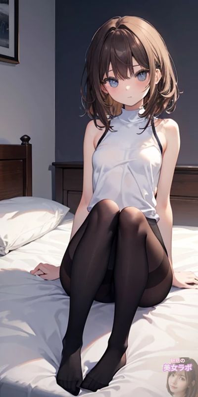 画像3: ベッドの上で座っているセクシーなアニメ風美女。
