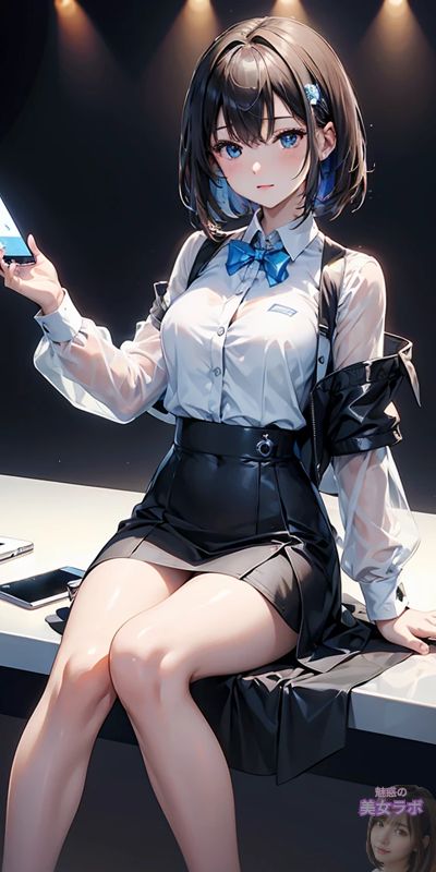画像4: オフィスで白いシャツと黒いスカートを着たセクシーなアニメ風美女。