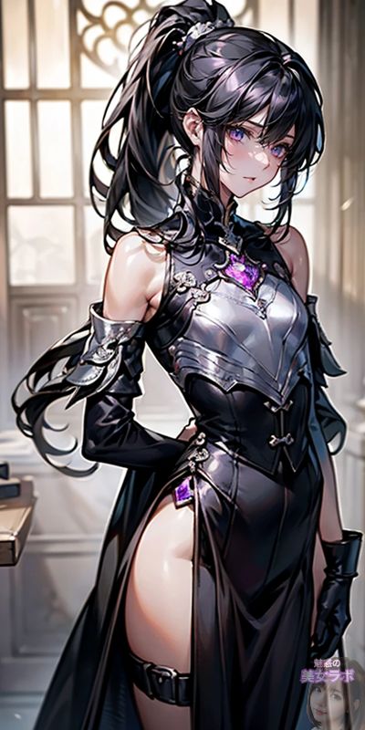 画像7: 黒い鎧を身に着けたセクシーなアニメ風美女。