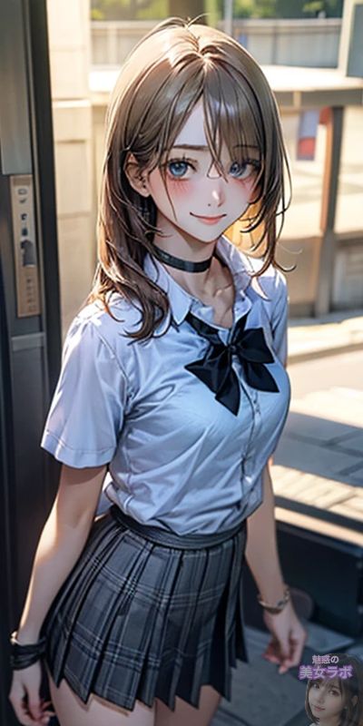 画像1: セーラー服を着た彼女は、学校の帰り道を歩いている瞬間を捉えたものです。その穏やかな笑顔が印象的です。