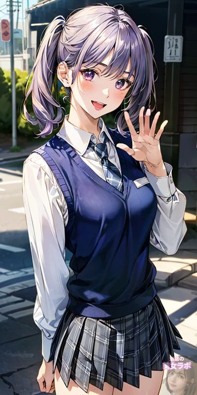 画像1: セーラー服を着た彼女は、学校の帰り道を歩いている瞬間を捉えたものです。その穏やかな笑顔が印象的です。