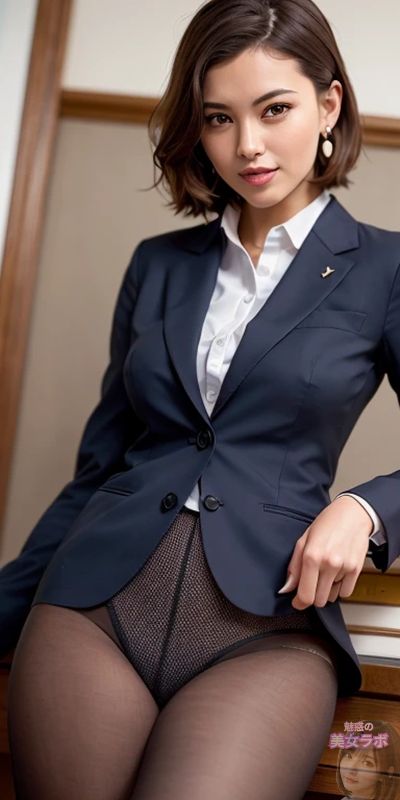 画像7: 黒いビジネススーツとタイツを着た日本人女性